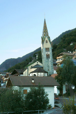 Die Zeit bis zum Sonnenuntergang nutzten wir für einen Abstecher nach Barbian mit seinem schiefen Kirchturm. |