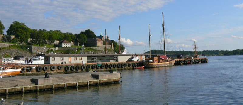 Akershus von Aker Brygge aus gesehenUnsere Unterkunft in Oslo war die MS Innvik - ein Schiff, das als Veranstaltungszentrum und günstiges Bed & Breakfast Hotel dient. Vom Schiff aus hat man einen guten Blick auf die moderne Osloer Oper.